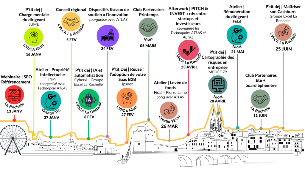 Nous organisons des évènements pour répondre aux besoins, problématiques de l’ensemble de l’écosystème de la Charente-Maritime et des Deux-Sèvres. :
